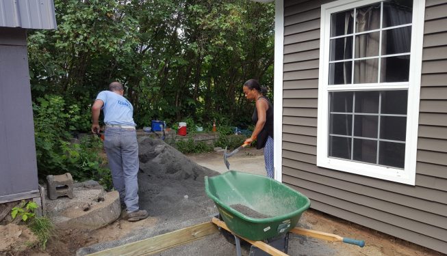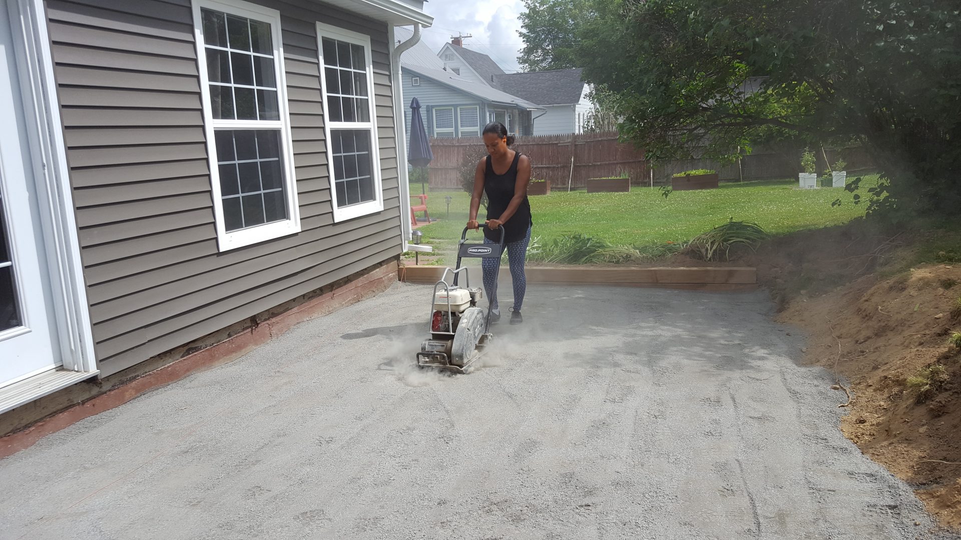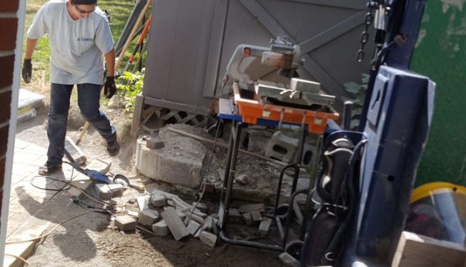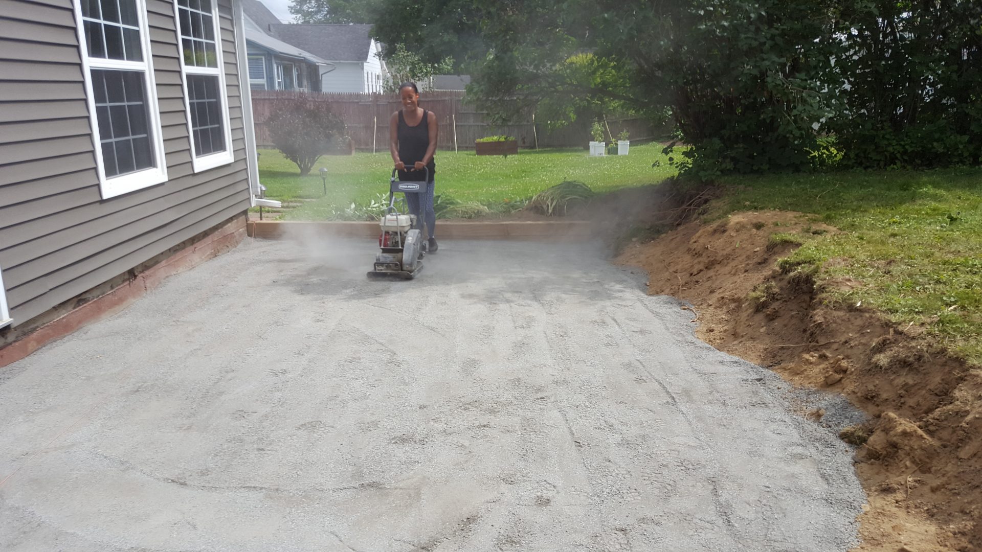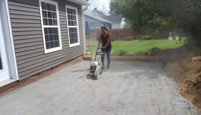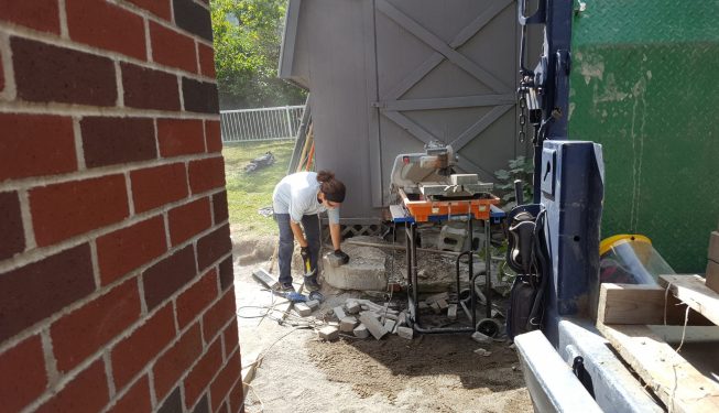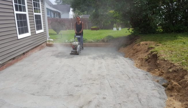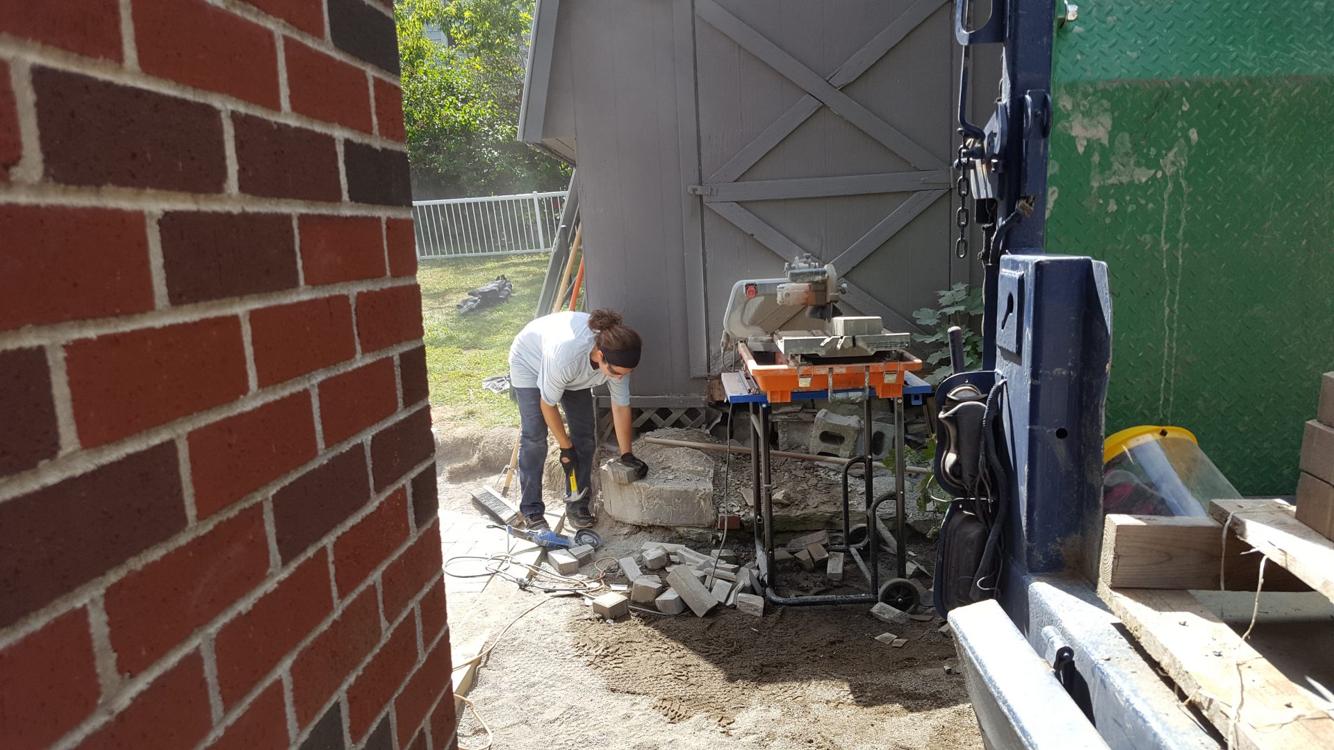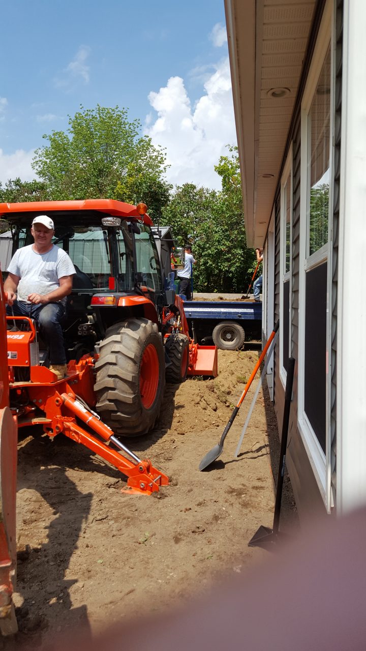 Time for the old deck to go. The home owner was in need of a backyard update. Clarkview installed a new paver deck pad which extended to the full length of the back of the house. This allowed for a large area for chairs and umbrella. The fire pit that was installed is half embedded into the upward slope of the back lawn. Curves were implemented along the edge of the paver pad to help with the transition between the pad, fire pit and slope of the back yard.
